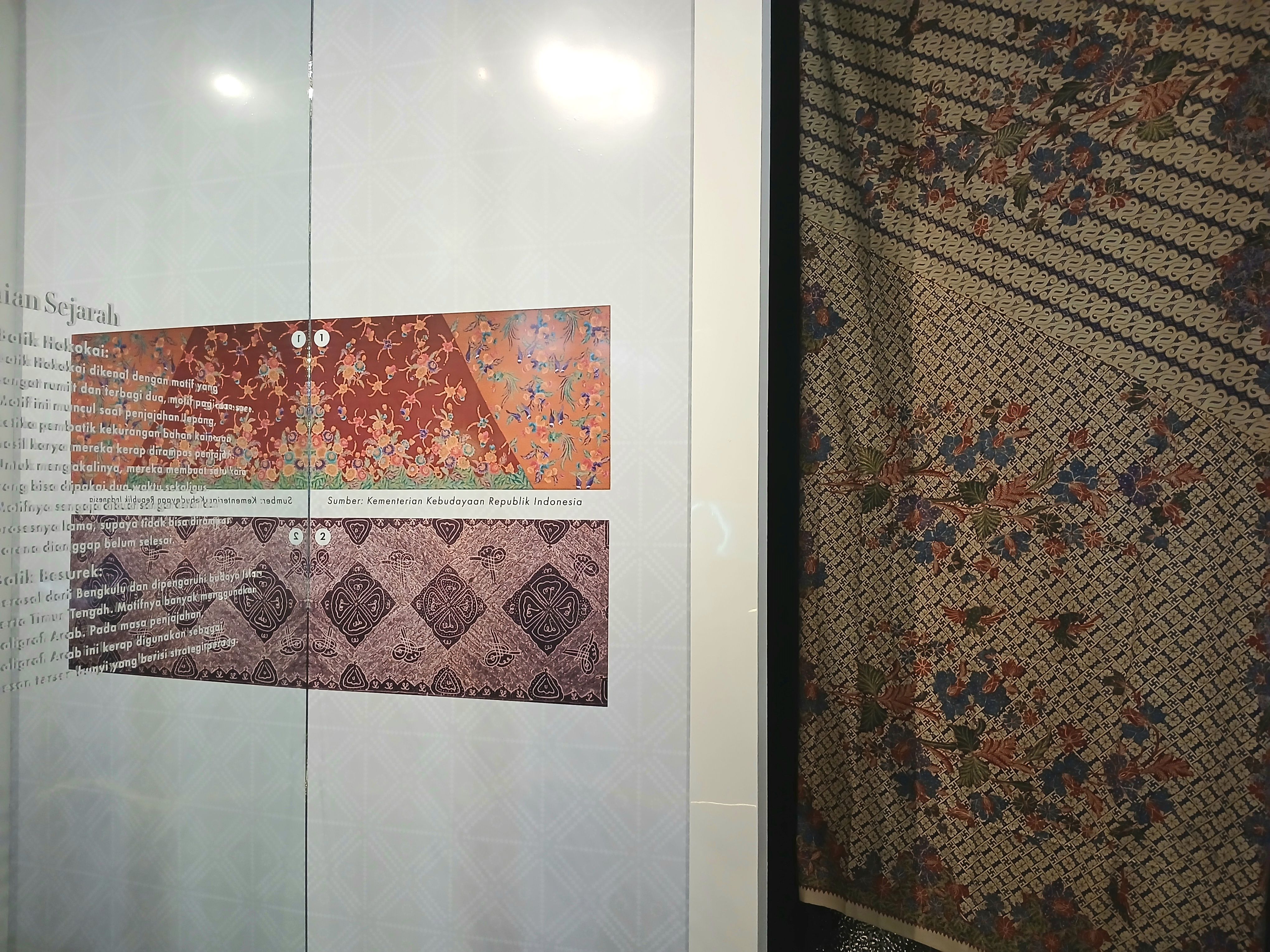 Foto : Dokumentasi Isty/TVRI. Batik Hokokai asal Pekalongan ditampilkan di Instalasi Batik Nusantara Heritage, Terminal 3 Bandara Soekarno Hata.