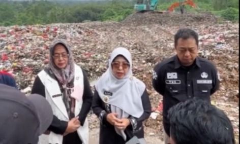 Bupati Pandeglang Raden Dewi Setiani didampingi Jubir Pemda dan Asda 2 saat sidak di TPA Bangkonol ( Sumber : Tb Agus Jamaludin )