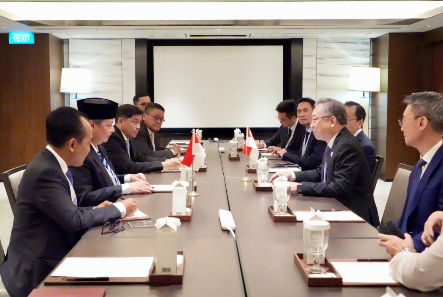 Dalam rangkaian kunjungan kerja ke Singapura, Menteri Koordinator Bidang Perekonomian Airlangga Hartarto melakukan pertemuan bilateral dengan Minister for Trade and Industry Singapura Gan Kim Yong, Selasa (18/11/2025).