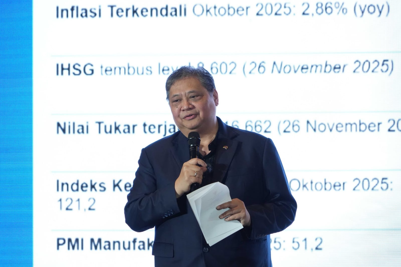Airlangga menambahkan bahwa berbagai tekanan ekonomi global sepanjang 2025 telah banyak diantisipasi oleh Pemerintah. Stabilitas makro tetap terjaga, tercermin dari perbaikan kepercayaan konsumen, PMI manufaktur di level ekspansif, serta penguatan pasar keuangan.