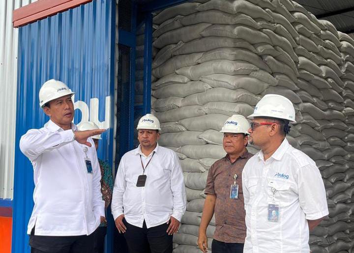 Direktur Utama(Dirut) Perum Bulog Ahmad Rizal Ramdhani meninjau stok beras di Gudang Bulog. (Humas Bulog)