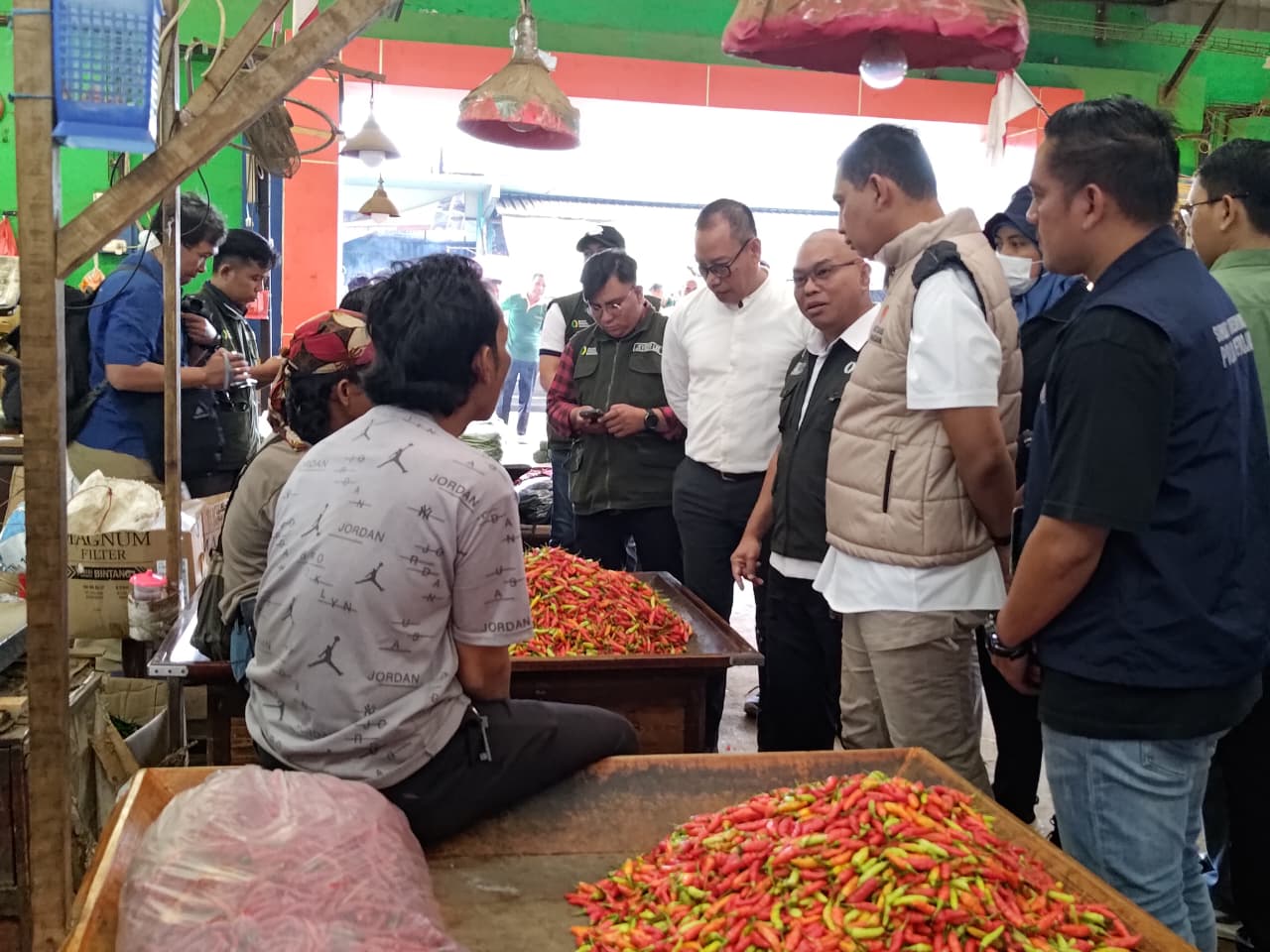 Deputi Bidang Ketersediaan dan Stabilisasi Pangan Bapanas I Gusti Ketut Astawa (tengah) meninjau Pasar Induk Kramat Jati. (Tvrijakartanews/ John Abimanyu)
