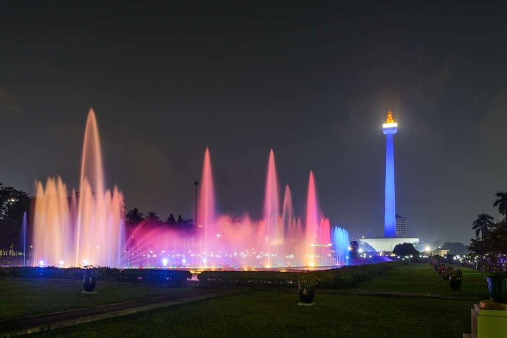 Pertunjukan air mancur menari di Monumen Nasional (Monas), Jakarta. Foto : Dok. Istimewa