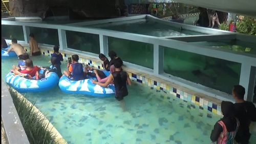 Disana, para penjung bisa bermain air di kolam arus sembari melihat koleksi ikan, seperti ikan Arapaima Gigas, Aligator Spatula, Gurame Albino, Nila Bangkok, dan Ikan Koi.
