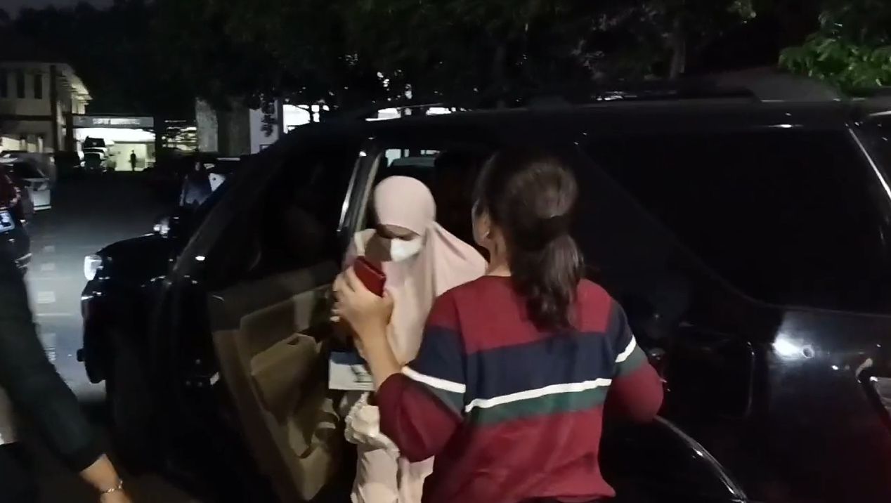 Dengan mengenakan masker dan baju berwarna pink, Intan turun dari mobil Fortuner hitam dengan didampingi oleh kerabatnya dan langsung masuk ke dalam gedung Satreskrim Polres Bogor.