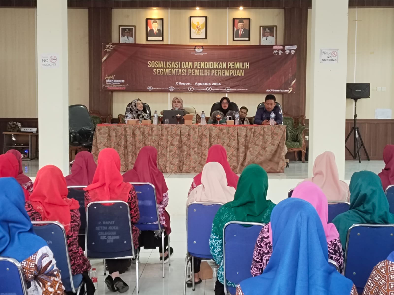 Cilegon, tvrijakartanews - Komisi Pemilihan Umum (KPU) Kota Cilegon melakukan sosialisasi dan pendidikan pemilih segmentasi pemilih perempuan yang bertempat di aula Kantor Kecamatan Cilegon, Kota Cilegon, Kamis (15/08/2024).