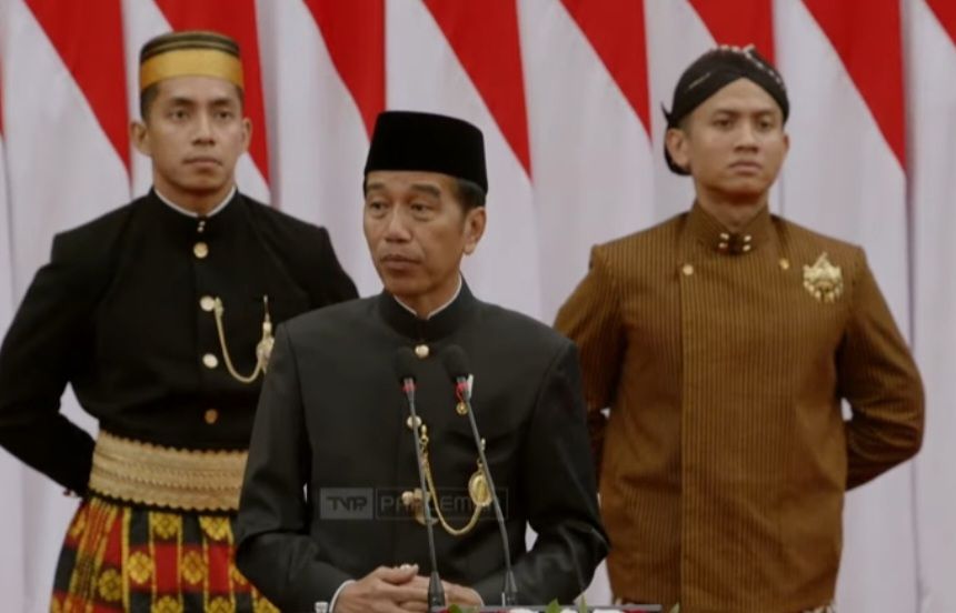 Presiden Joko Widodo saat berpidato pada pembukaan Sidang Tahunan MPR dan Sidang bersama DPR dan DPD di Kompleks Parlemen Senayan, Jakarta pada Jumat (16/8/2024). (Foto: TV Parlemen).