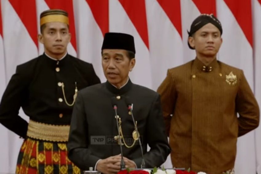 Presiden Joko Widodo saat berpidato pada pembukaan Sidang Tahunan MPR dan Sidang bersama DPR dan DPD di Kompleks Parlemen Senayan, Jakarta pada Jumat (16/8/2024). (Foto: TV Parlemen).