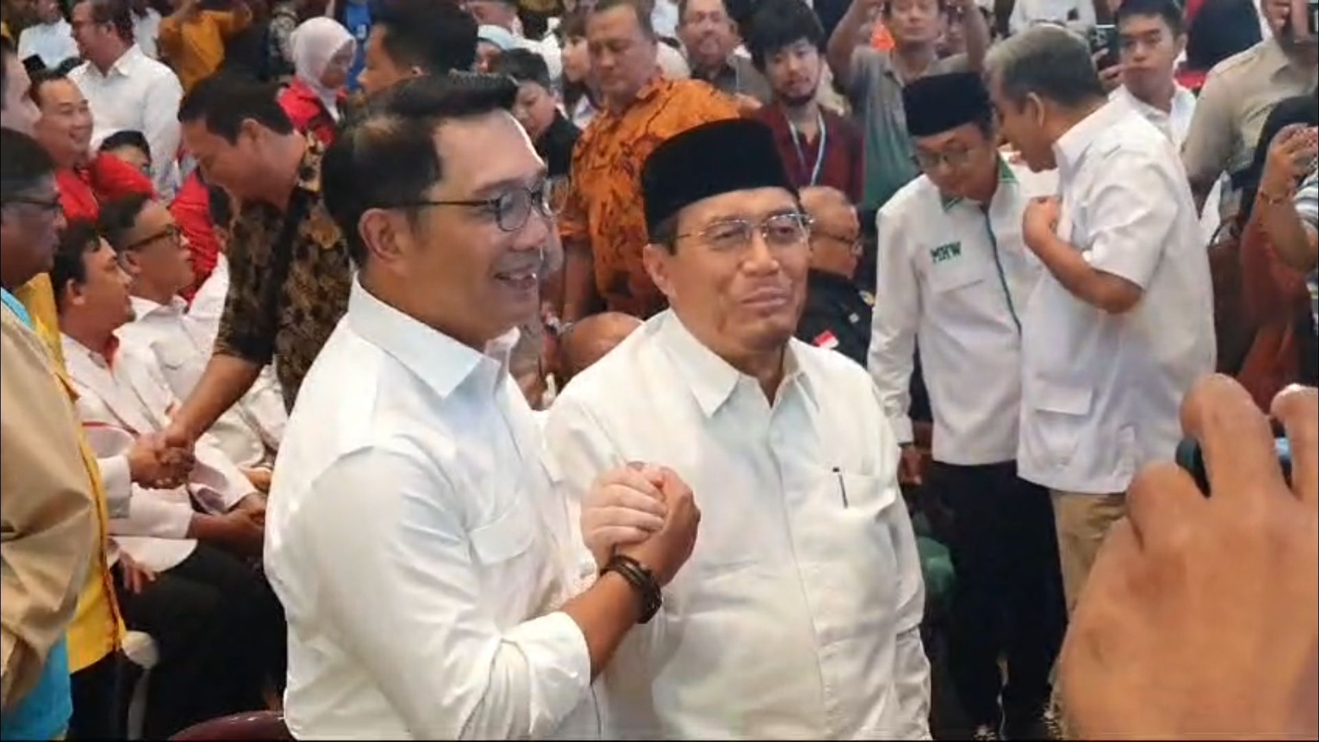 Jakarta, tvrijakartanews - Pasangan calon gubernur dan wakil gubernur, Ridwan Kamil (RK) - Suswono resmi mendapat dukungan dari 12 partai untuk bertarung di Pilkada Jakarta 2024. Dukungan disampaikan melalui deklarasi di Ballroom Hotel Sultan, Jakarta Pusat, pada Senin (19/8/2024).