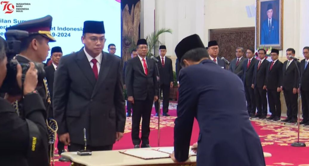 Presiden Joko Widodo melantik Angga Raka Prabowo menjadi Wamen Kominfo di Istana Merdeka Jakarta. (Foto: Setpres).