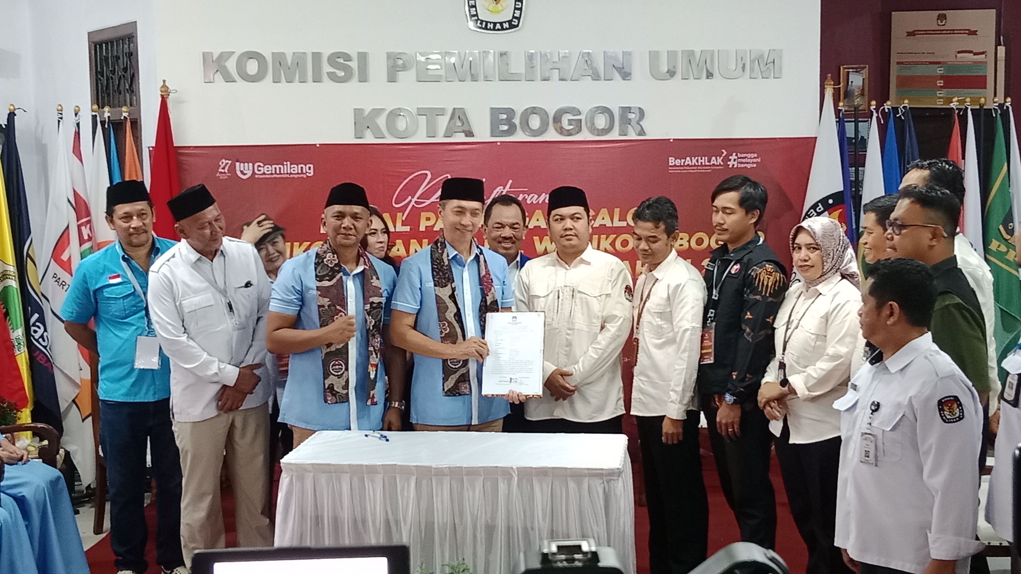 "Baru saja kami, Dedie Rachim dan kang Jenal Mutaqin bersama ketua ketua partai, gabungan koalisi dari PAN, Gerindra, kemudian Demokrat, Gelora dan Partai Perindo secara langsung sudah diterima berkas berkas lengkap oleh ketua KPUD Kota Bogor," katanya kepada wartawan usai memberikan berkas.