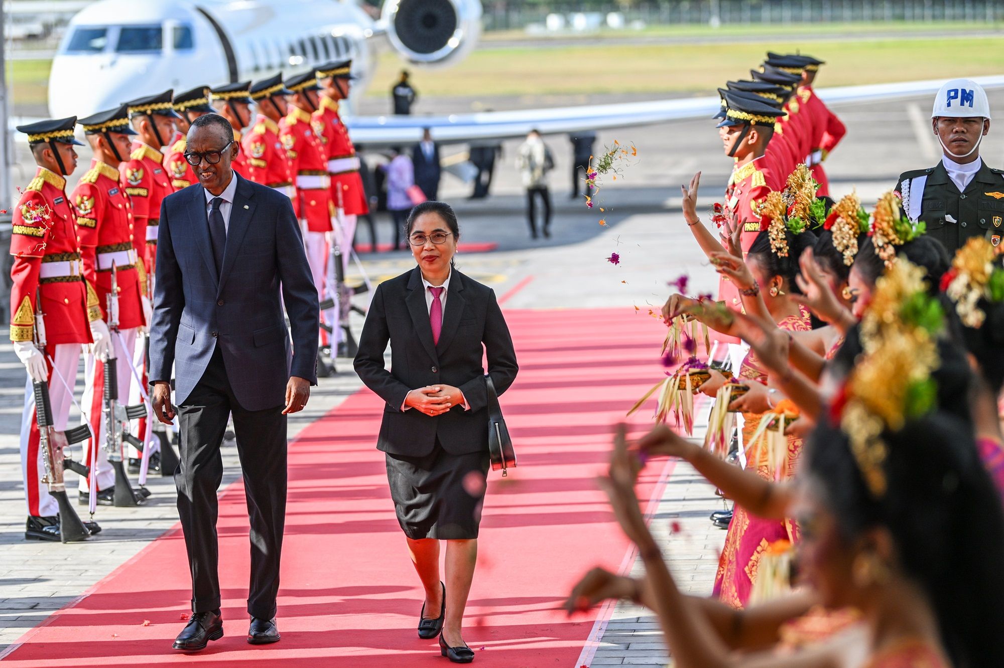 Pada Minggu (1/9/2024) pagi, Presiden Rwanda Paul Kagame mendarat di Bandara Internasional I Gusti Ngurah Rai, Badung, Bali didampingi Direktur Rumah Sakit Jiwa Provinsi Bali, Ni Wayan Murdani disambut dengan tarian khas Bali.