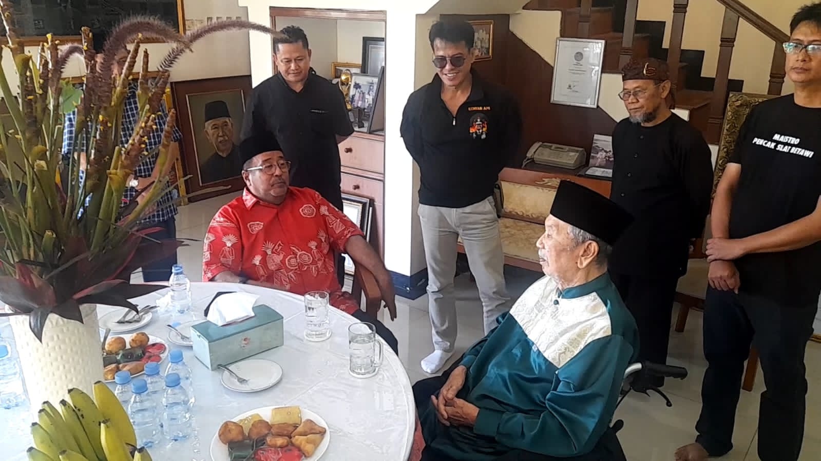Bogor, tvrijakartanews - Calon wakil Gubernur (Cawagub) Jakarta, Rano Karno alias bang Doel menyambangi kediaman bapak pencak silat dunia yang juga Wakil Gubernur Jakarta periode 1984-1987, Mayjen Purnawirawan Eddy Marzuki di Desa Cipayung, Kecamatan Megamendung, Kabupaten Bogor, Jawa Barat pada Selasa 3 September 2024.