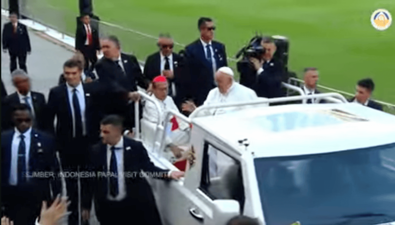 Paus Fransiskus Menyapa Umat yang Berada di Stadion GBK Jakarta. Foto : YouTube Komsos KWI