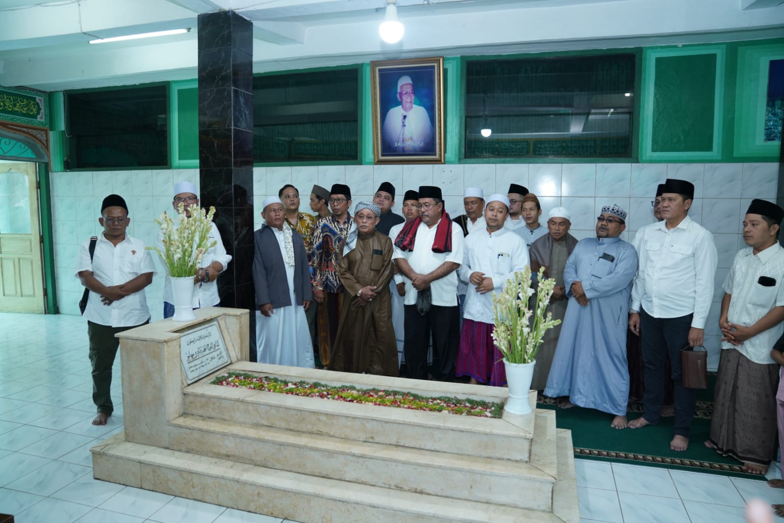 Bakal calon wakil gubernur Jakarta Rano Karno berziarah makam KH. Buya Zayadi di sela-sela kegiatan bersilaturahmi ke Pondok Pesantren (Ponpes) Az-Ziyadah, Jalan Madrasah, Klender, Duren Sawit, Jakarta Timur, Jumat (13/9/2024).