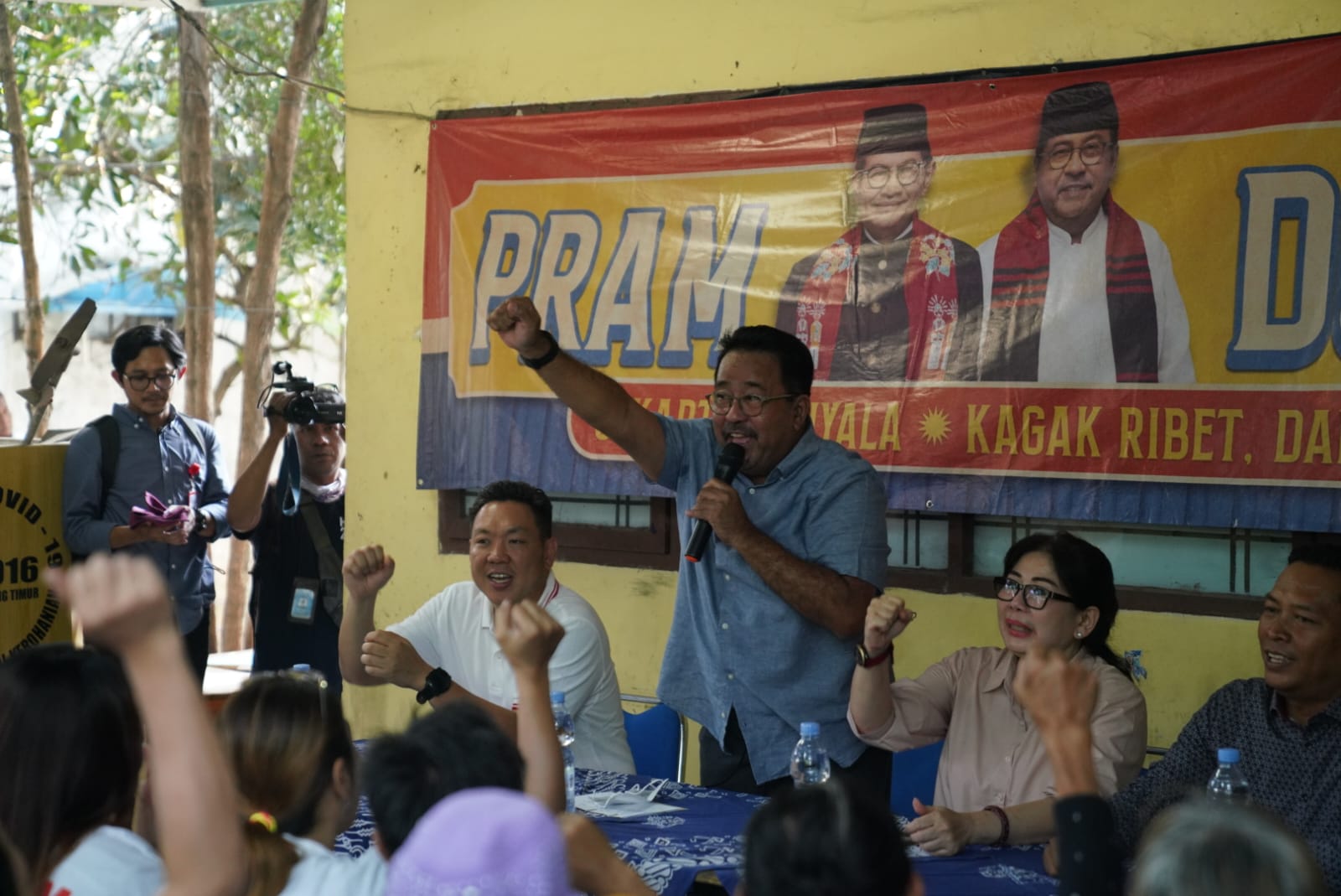 Bakal calon wakil gubernur Jakarta Rano Karno di Perumnas BCI Cengkareng, Jakarta Barat, Senin (16/9/2024).