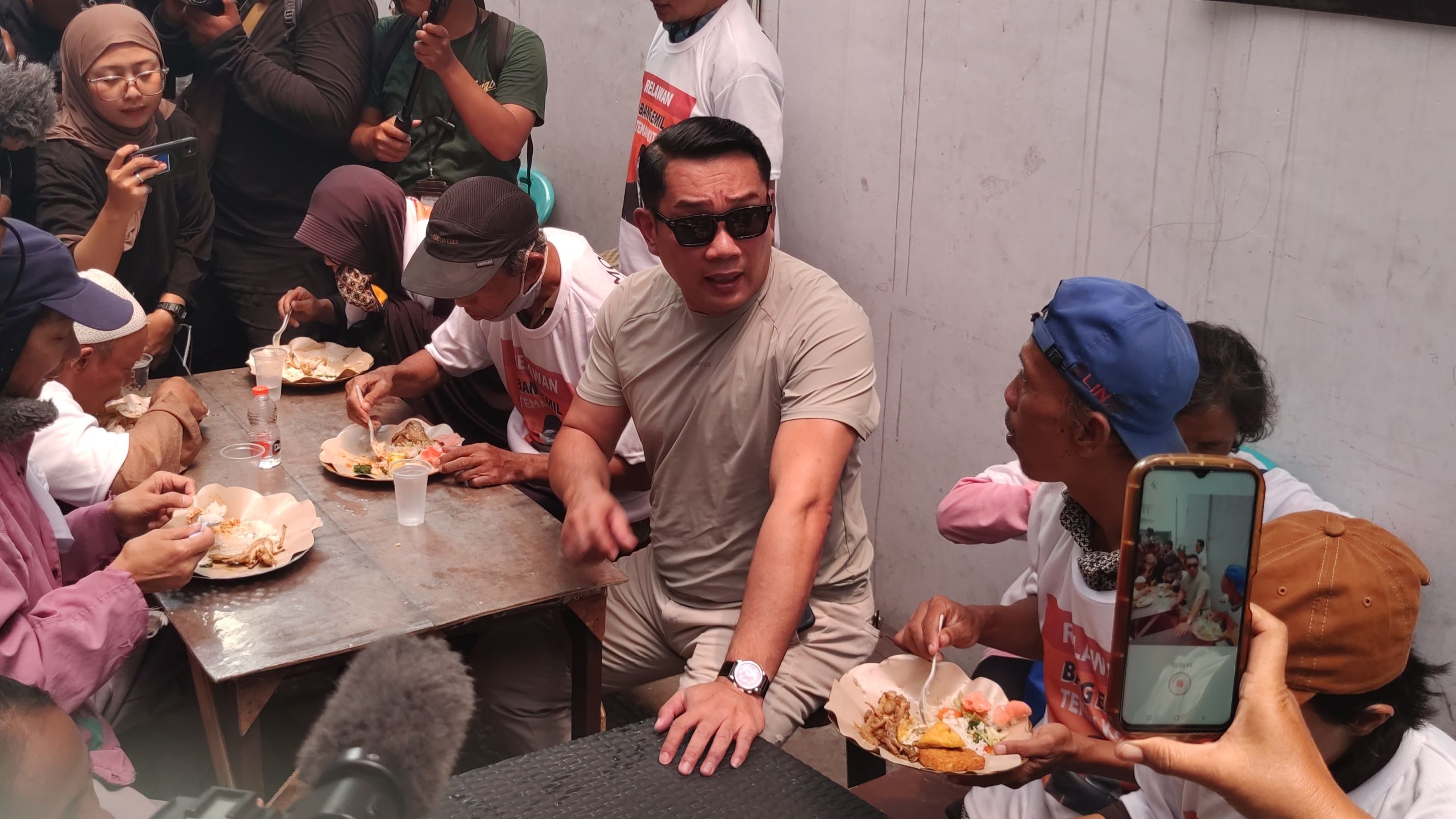 Bakal calon Gubernur Jakarta, Ridwan Kamil alias RK saat menemui penerima program makan siang gratis di Warung Zahara, Warakas, Jakarta Utara. Foto M Julnis Firmansyah