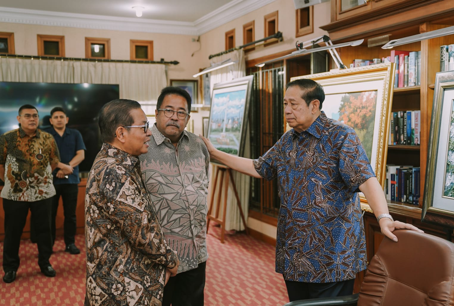 Bakal calon gubernur dan wakil gubernur Jakarta Pramono Anung dan Rano Karno saat berbincang dengan Susilo Bambang Yudhoyono (SBY) di kediaman Presiden ke-6 RI itu, Cikeas, Jawa Barat, Sabtu (21/9/2024). (Foto: Tim Pemenangan Pramono-Rano Karno).