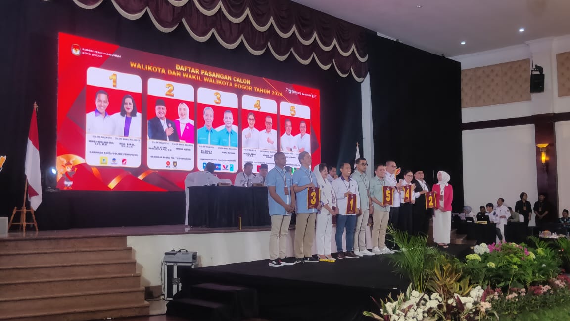 Bogor, tvrijakartanews - Usai dilakukan pengundian, masing masing pasangan calon (Paslon) Calon Wali Kota dan Wakil Wali Kota Bogor resmi mendapat nomor urut dalam Pilkada 2024.