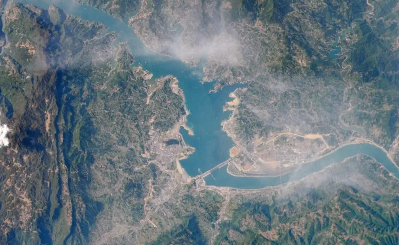 Gambar: Bendungan Tiga Ngarai di China yang diambil oleh para astronaut di Stasiun Luar Angkasa Internasional pada bulan April 2009 (NASA)