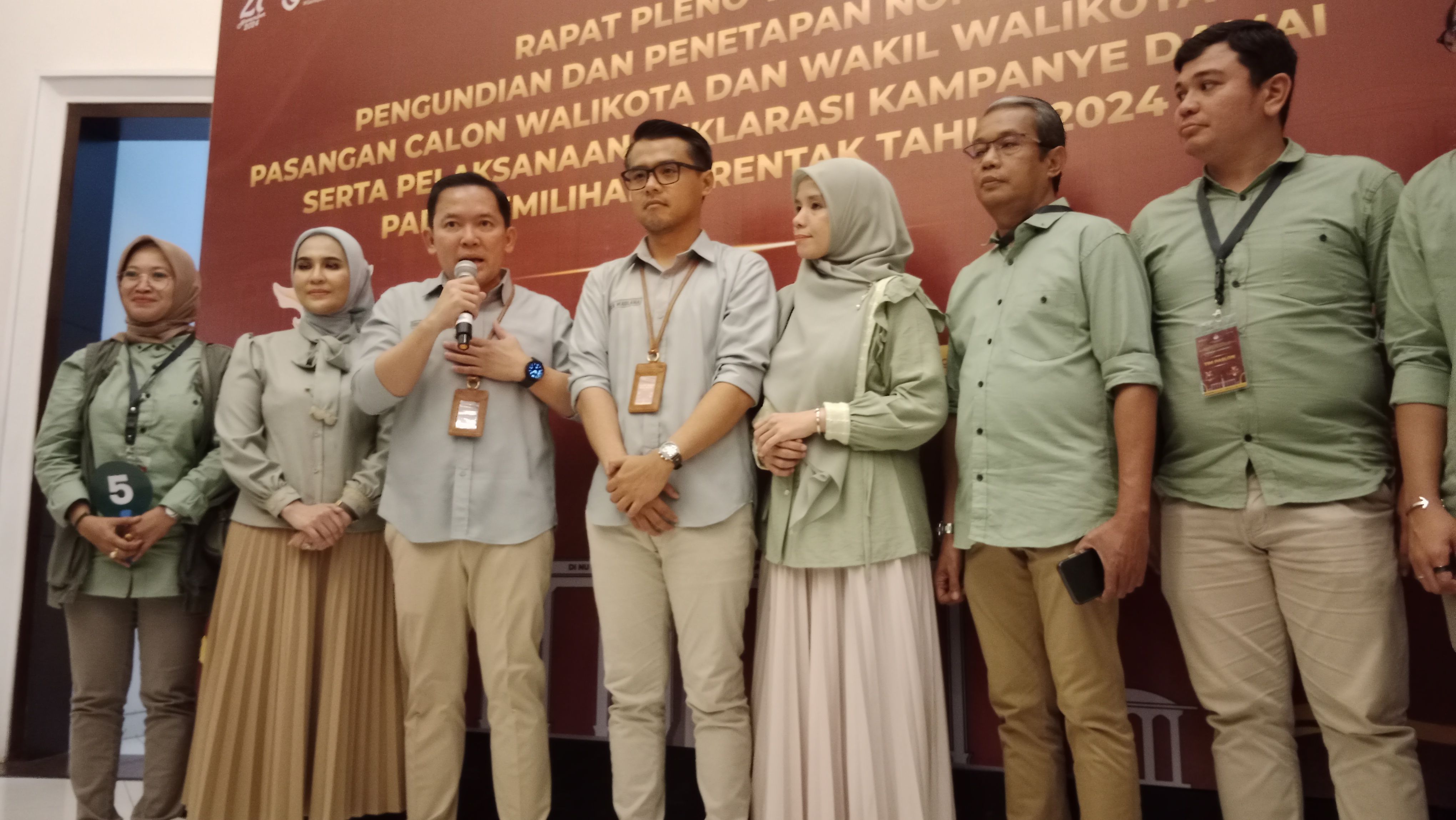 "Hari ini akhirnya kita semua Paslon di Kota Bogor mendapatkan nomor urut, dan Alhamdulillah pasangan Dokter Rayendra - Eka Maulana mendapatkan nomor urut 5," kata Dokter Raendi Rayendra, kepada wartawan usai rapat pleno pengundian nomor urut pasangan calon Wali Kota dan Wakil Walikota Bogor yang digelar KPU di Braja Mustika Convention Center, Bogor Barat, Kota Bogor, Jawa Barat, pada Senin 23 September 2024 malam.