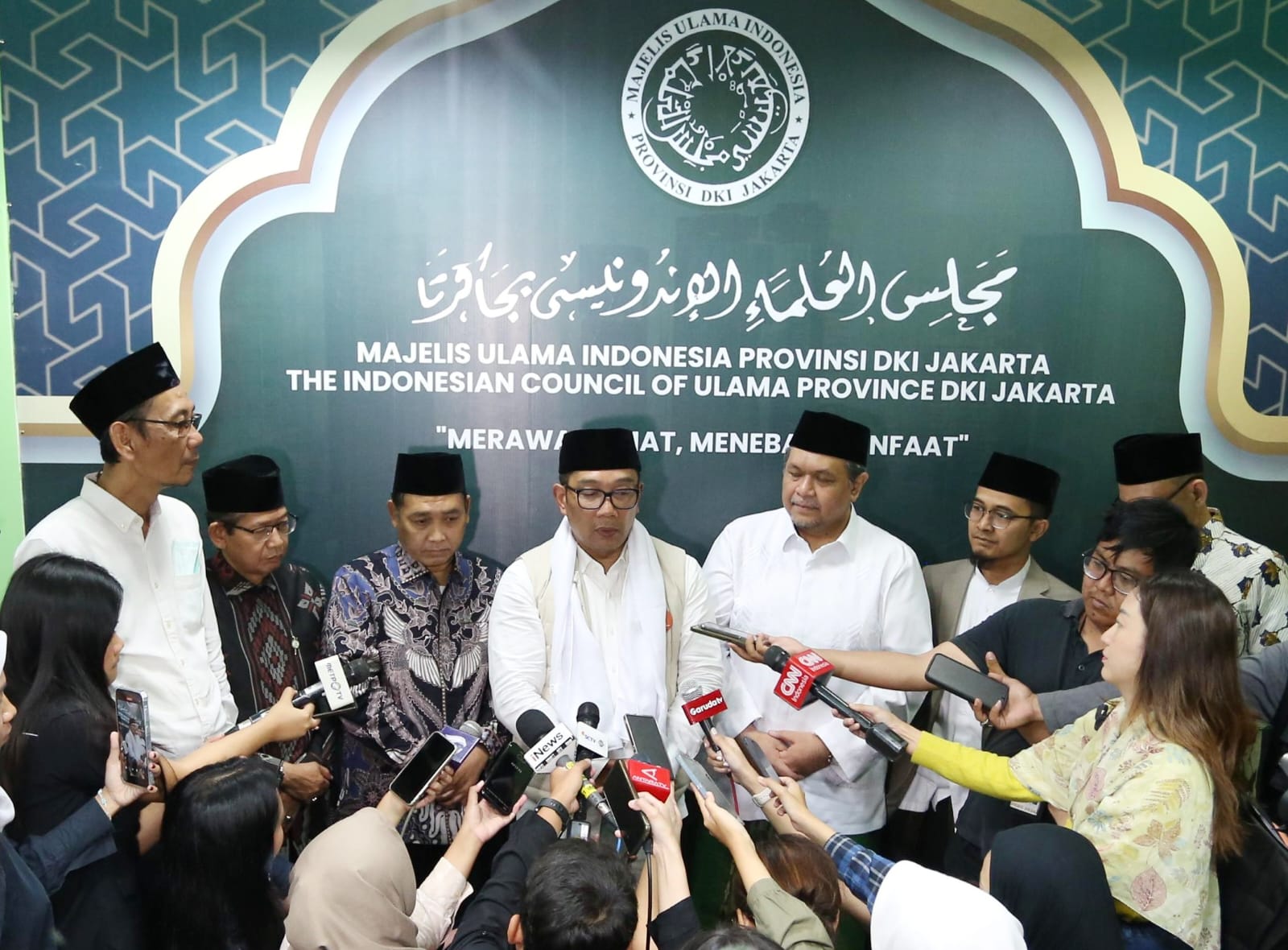 Jakarta, tvrijakartanews - Gubernur Jakarta Nomor Urut 1, Ridwan Kamil alias RK bersilaturahmi ke Kantor Majelis Ulama Indonesia (MUI) Jakarta di Jalan Kramat Raya, Koja, Jakarta Utara. Dalam kunjungan itu, ia juga bertemu dengan pimpinan dan pengurus MUI Jakarta, serta perwakilan berbagai organisasi masyarakat (ormas) Islam di Jakarta.