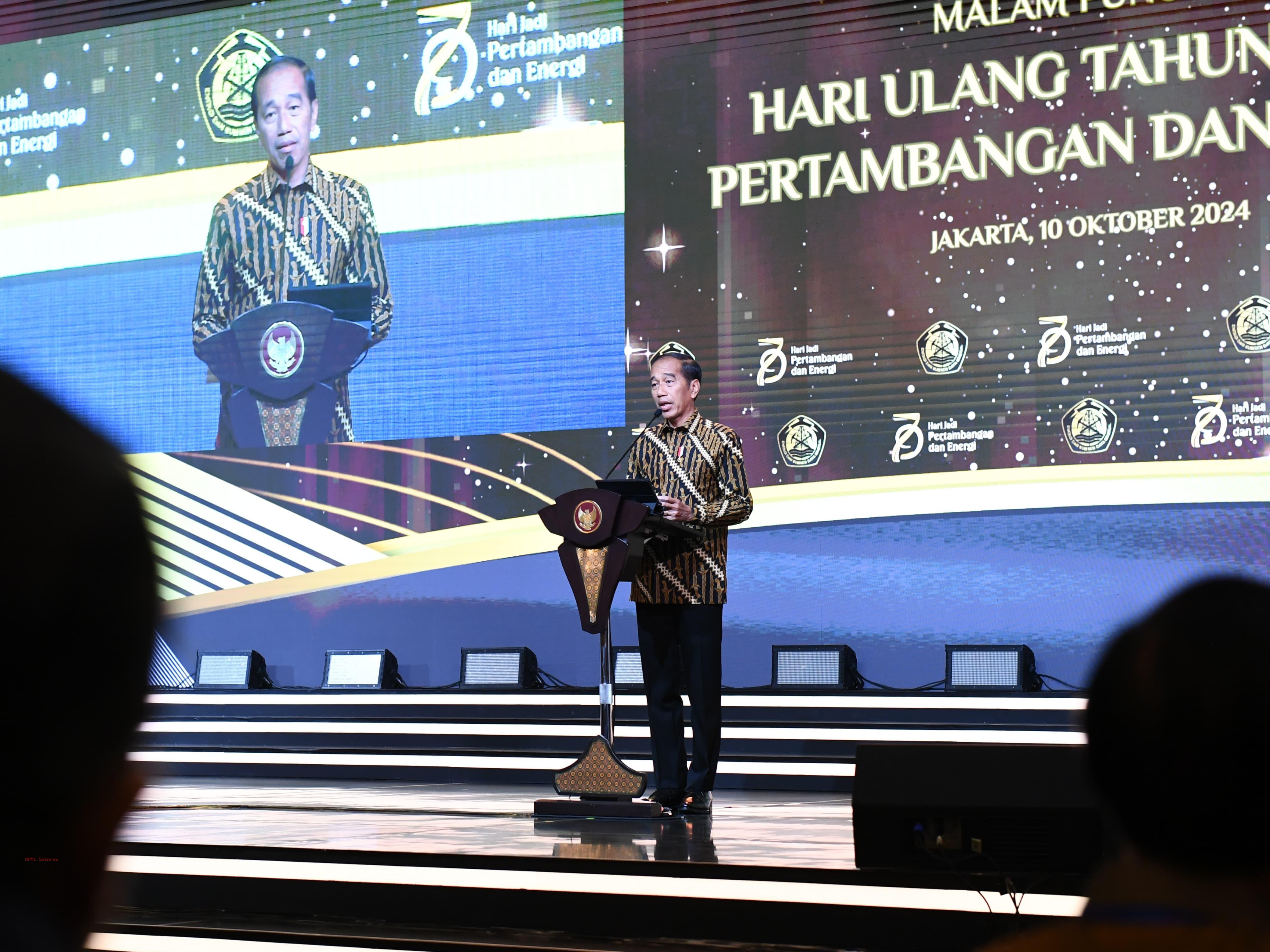Foto : Dokumentasi Setpress/BPMI. Jokowi memberikan sambutan di malam puncak perayaan HUT ke-79 Pertambangan dan Energi