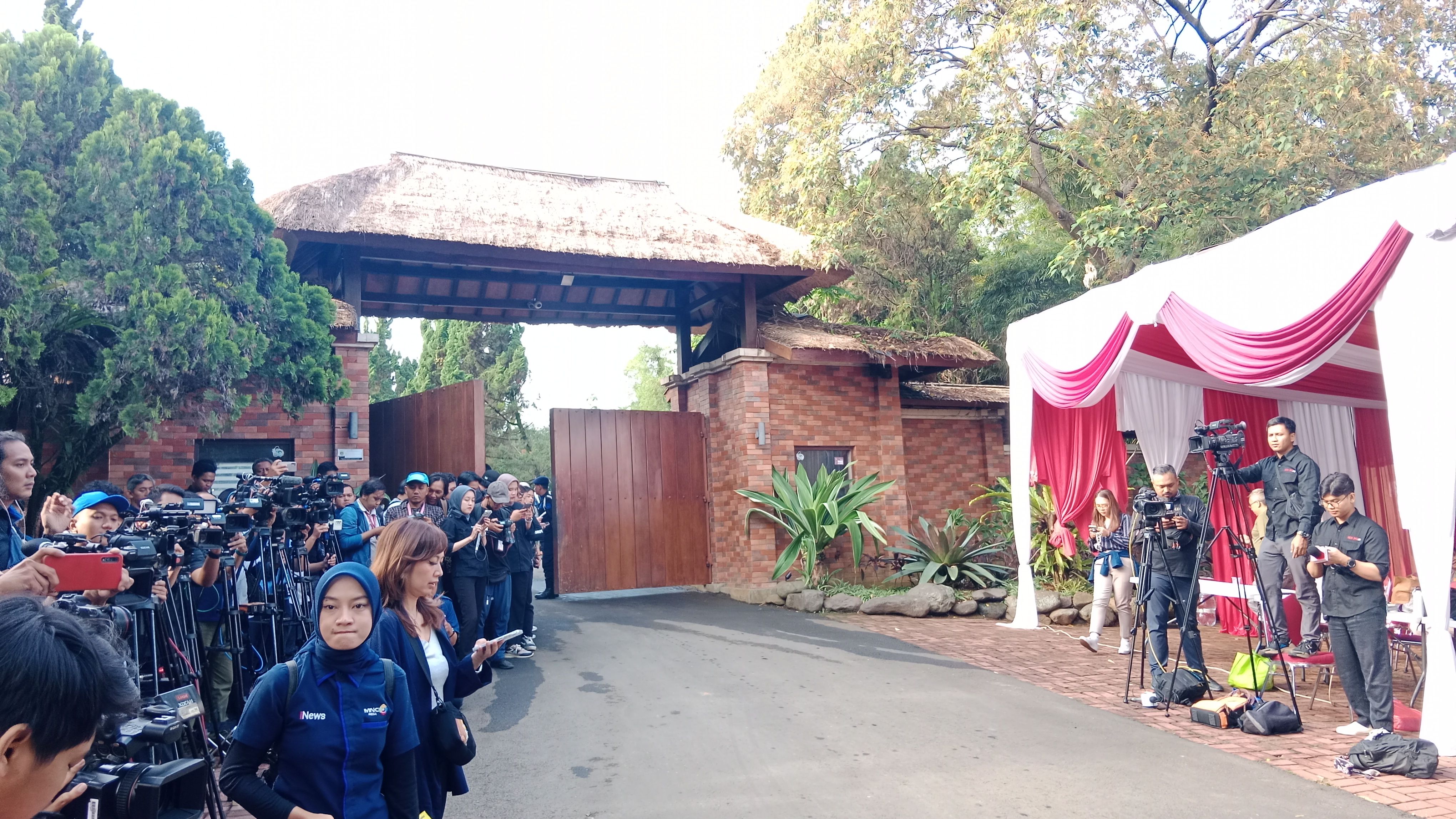 Kondisi gerbang utama Padepokan Garuda Jaksa yang merupakan kediaman presiden Terpilih Peabowo Subianto di Kawasan Hambalang, Kabupaten Bogor, Jawa Barat / Foto: Dimas Yuga Pratama