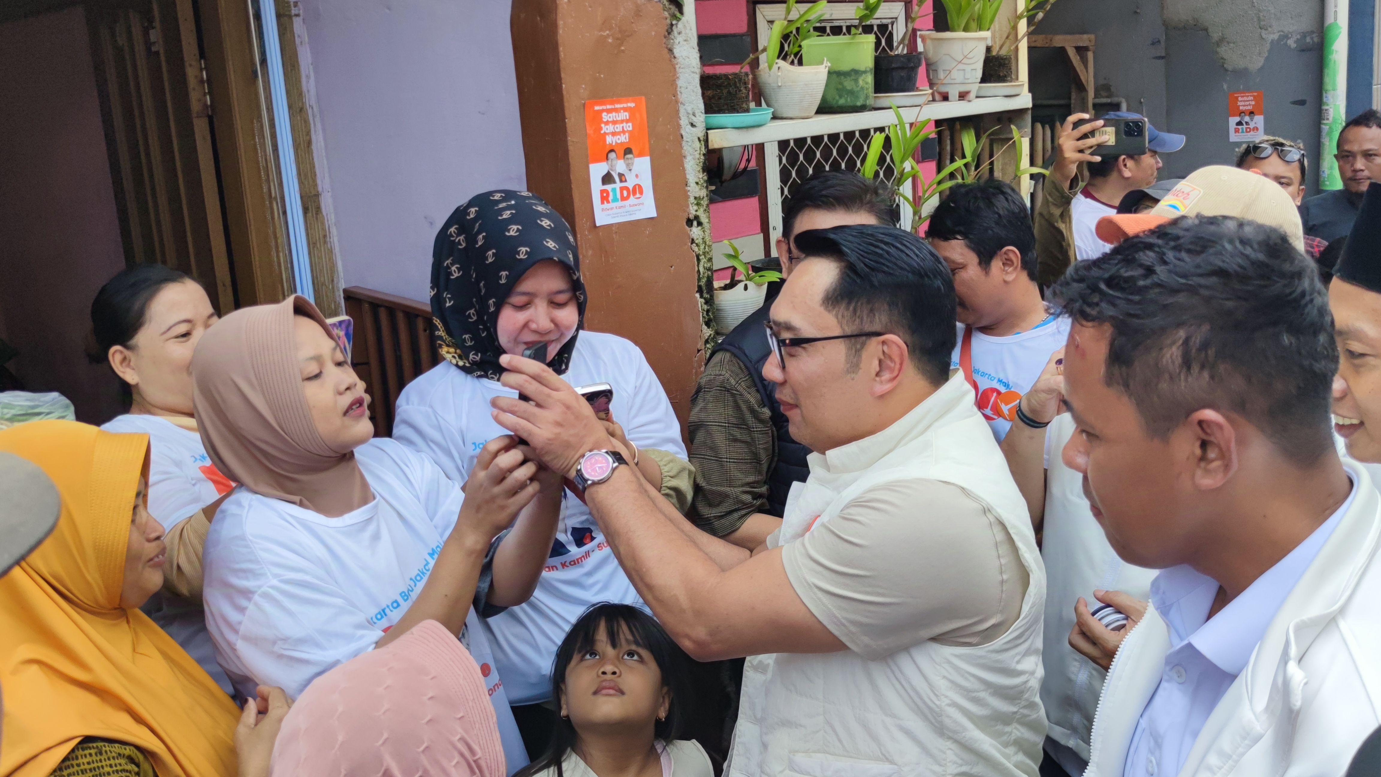 Calon Gubernur Jakarta Nomor Urut 1, Ridwan Kamil alias RK saat blusukan di kawasan Cakung Tipar, Jakarta Timur. Foto M Julnis Firmansyah