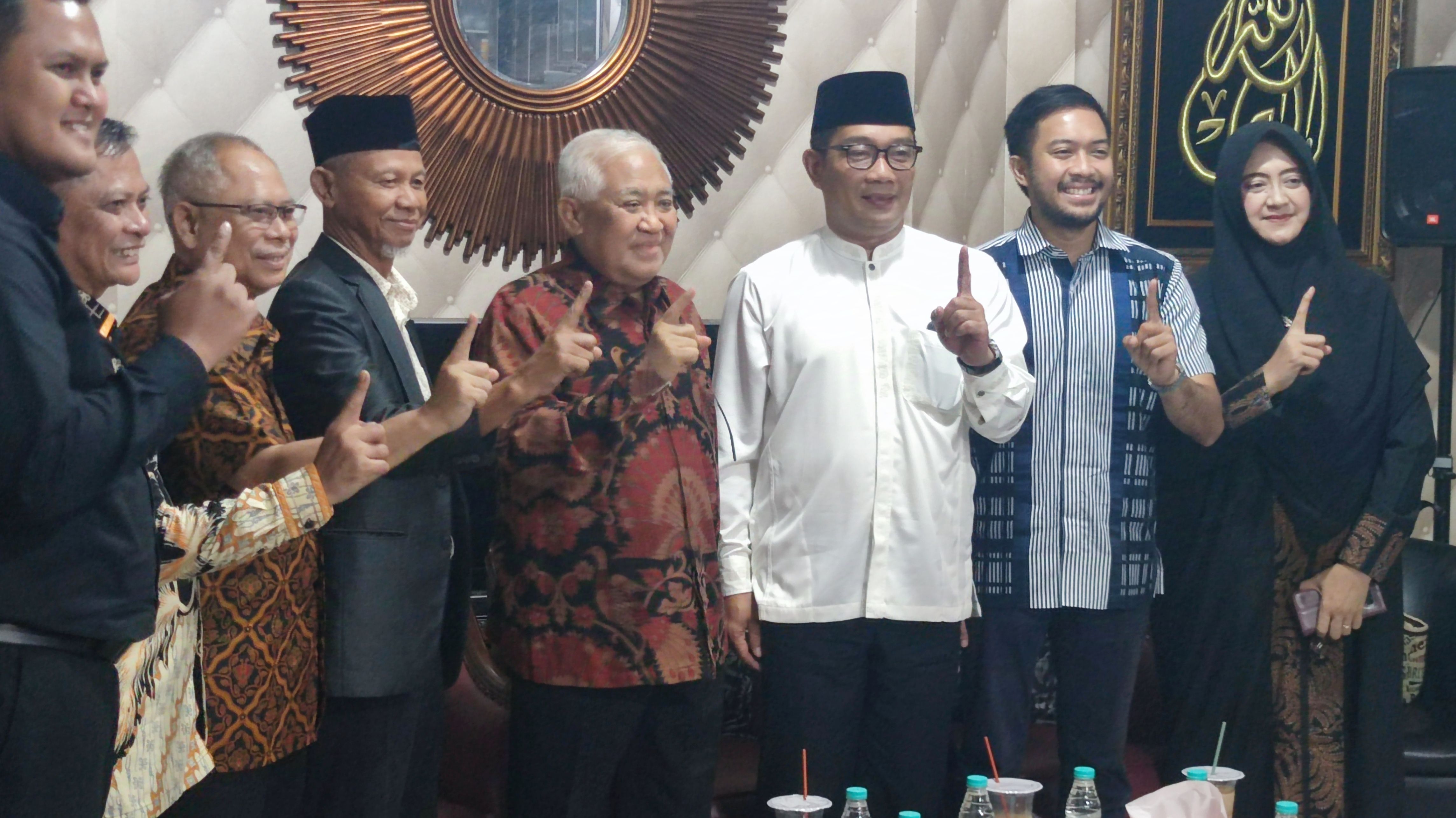 Mantan Ketua Umum PP Muhammadiyah, Din Syamsuddin bersama calon Gubernur Jakarta Nomor Urut 1, Ridwan Kamil alias RK. Foto M Julnis Firmansyah