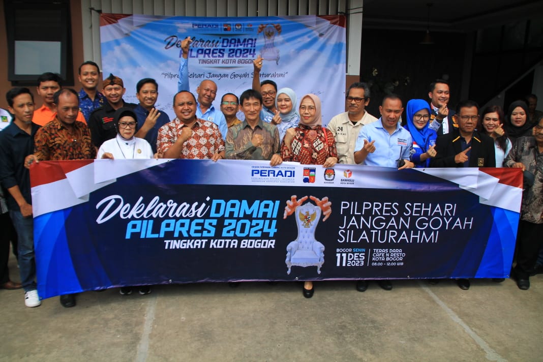 Sementara itu, Wakil Wali Kota Bogor Dedie A Rachim mengapresiasi Deklarasi Damai Pilpres 2024, yang diinisiasi Peradi Kota Bogor dan melibatkan insan pers.