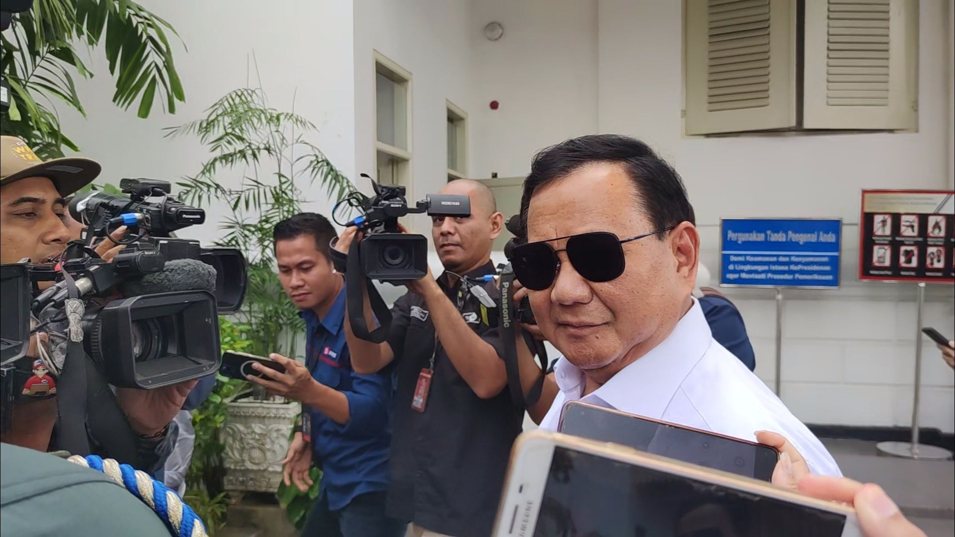Capres nomor urut 02, Prabowo Subianto saat ditemui di kawasan Istana Negara. Foto: M Julnis Firmansyah