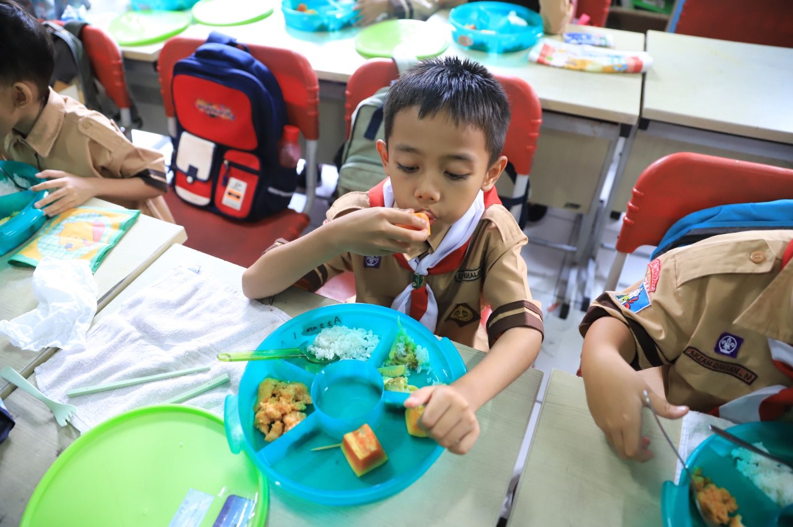 Foto : Dokumentasi Isty/TVRI. Pelaksanaan uji coba makan bergizi gratis di sekolah dasar di Kota Tangerang.