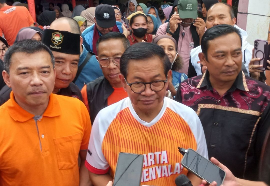 Calon gubernur Jakarta nomor urut 3, Pramono Anung didampingi Anang Hermansyah saat menyapa dsn menyerap aspirasi warga di Srengseng Sawah, Jakarta Selatan, Selasa (12/11/2024). (Foto: Chaerul Halim).