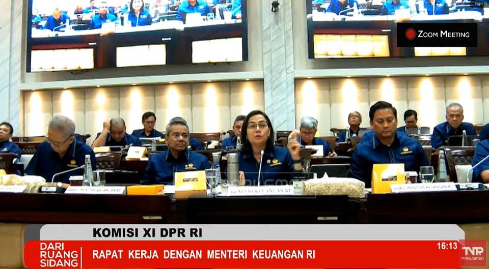 Menteri Keuangan Sri Mulyani Indrawati dalam rapat kerja bersama Komisi XI DPR RI. (Tangkap layar YouTube TV Parlemen)