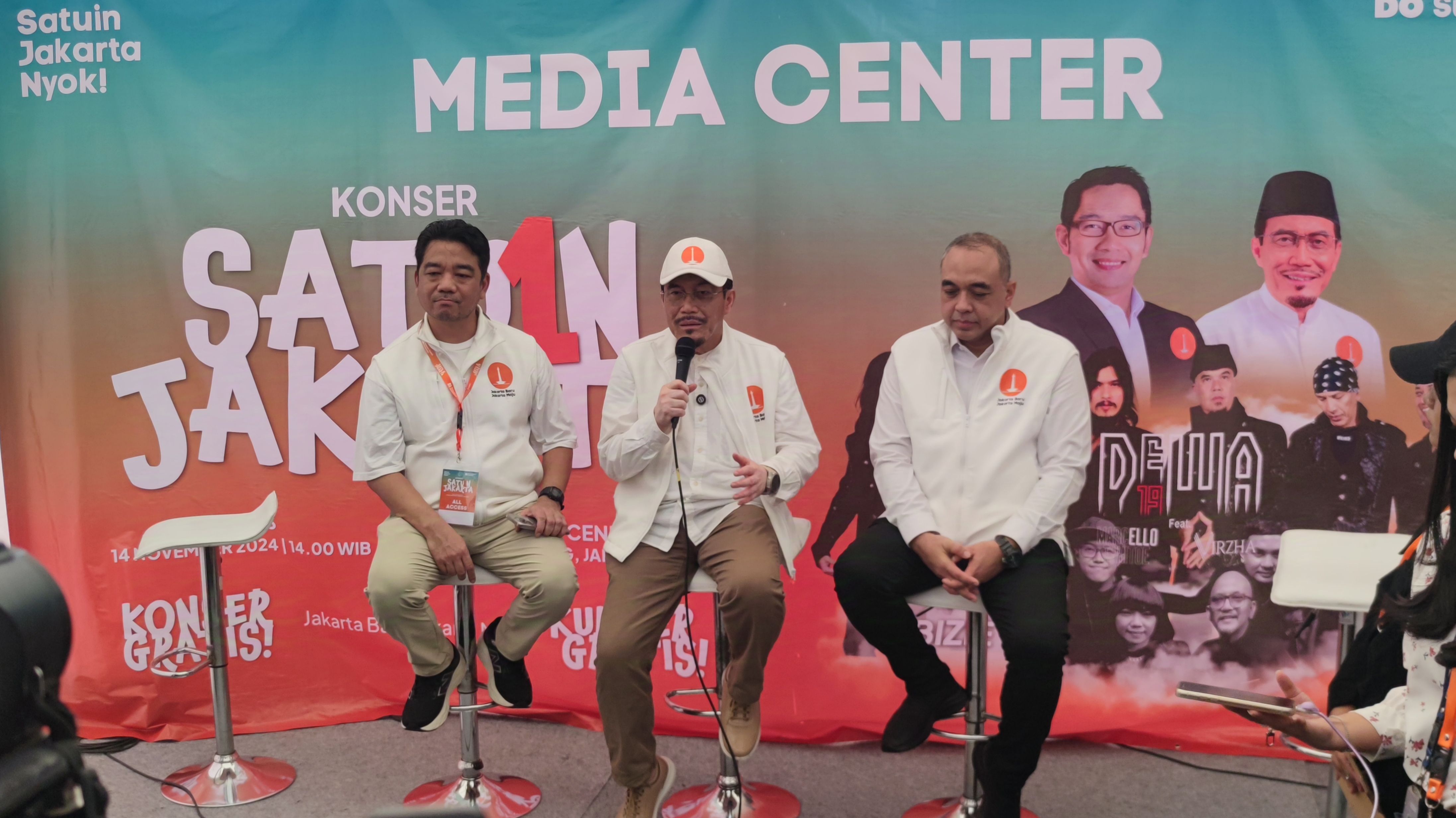Jakarta, tvrijakartanews - Kampanye akbar bertema "Konser Satu1n Jakarta" pasangan calon Gubernur dan Wakil Gubernur Jakarta Nomor Urut 1, Ridwan Kamil-Suswono (RIDO) di Kalideres, Jakarta Barat, Rabu (14/11/2024), tidak dihadiri oleh sejumlah ketua umum partai politik Koalisi Indonesia Maju (KIM) Plus. Adapun saat ini pasangan RIDO diusung 15 partai pengusung dalam Pilkada Jakarta 2024.