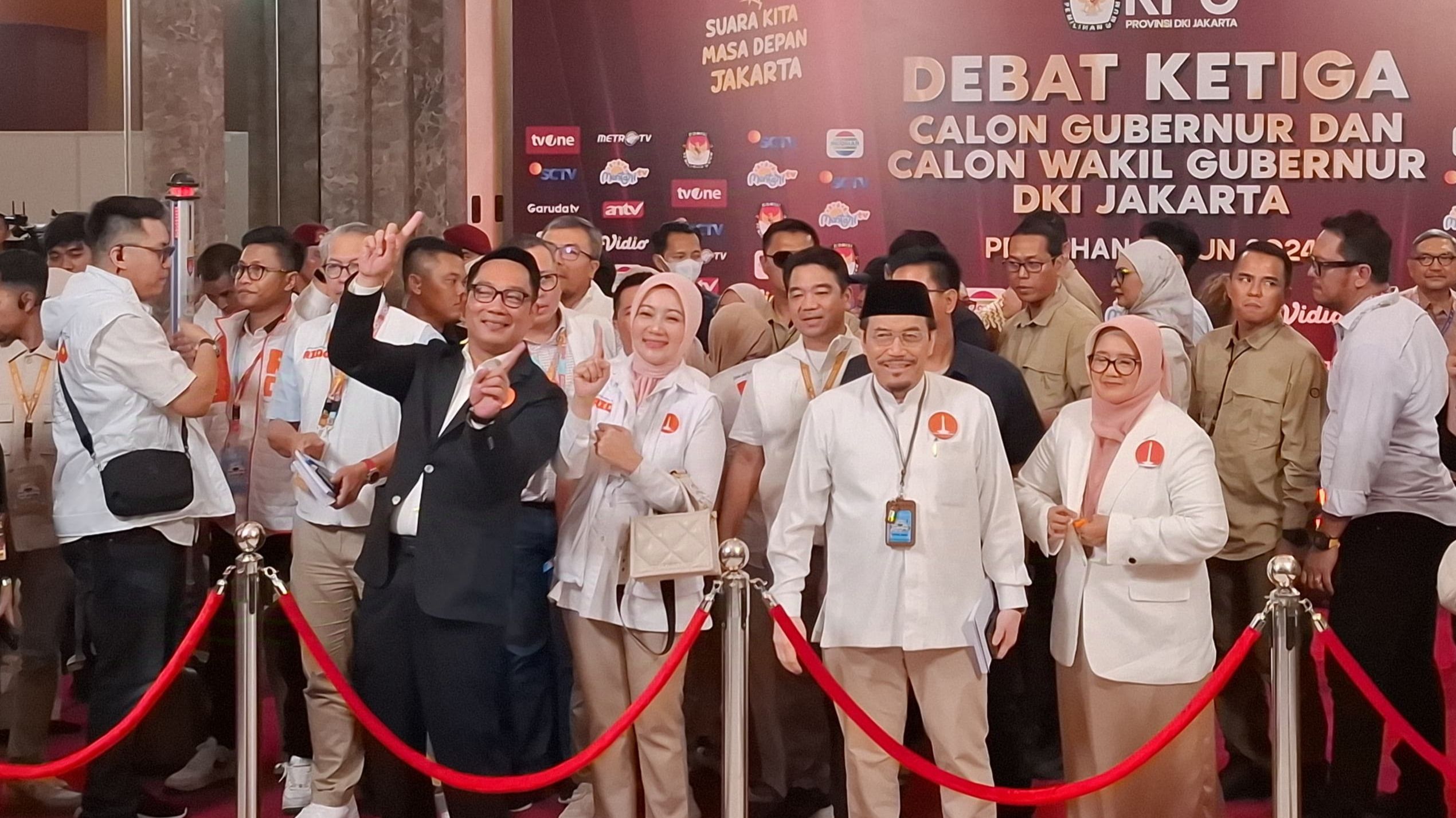 Pasangan calon Gubernur dan calon Wakil Gubernur Jakarta Nomor Urut 1, Ridwan Kamil alias RK dan Suswono (RIDO) sebelum debat Pilkada Jakarta 2024. Foto M Julnis Firmansyah