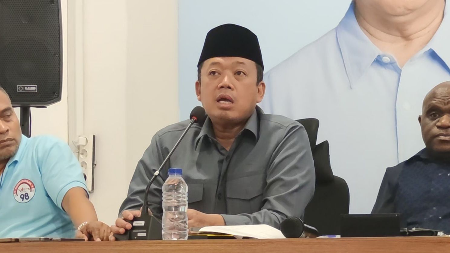 "Pak Prabowo menjawab pertanyaan dengan taktis, dengan senyum, tidak memojokkan, tidak membantai orang, tapi mengajak persatuan dan kesatuan Indonesia. Pada malam debat ini kami berani mengklaim Pak Prabowo memenangkan perdebatan pada babak pertama," kata Nusron di KPU pada Rabu dini hari, 13 Desember 2023.
