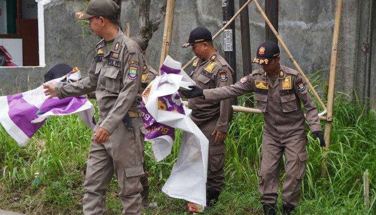 Foto : Dokumentasi Satpol PP Kabupaten Tangerang. Alat peraga kampanye di Kabupaten Tangerang mulai dibersihkan Satpol PP.
