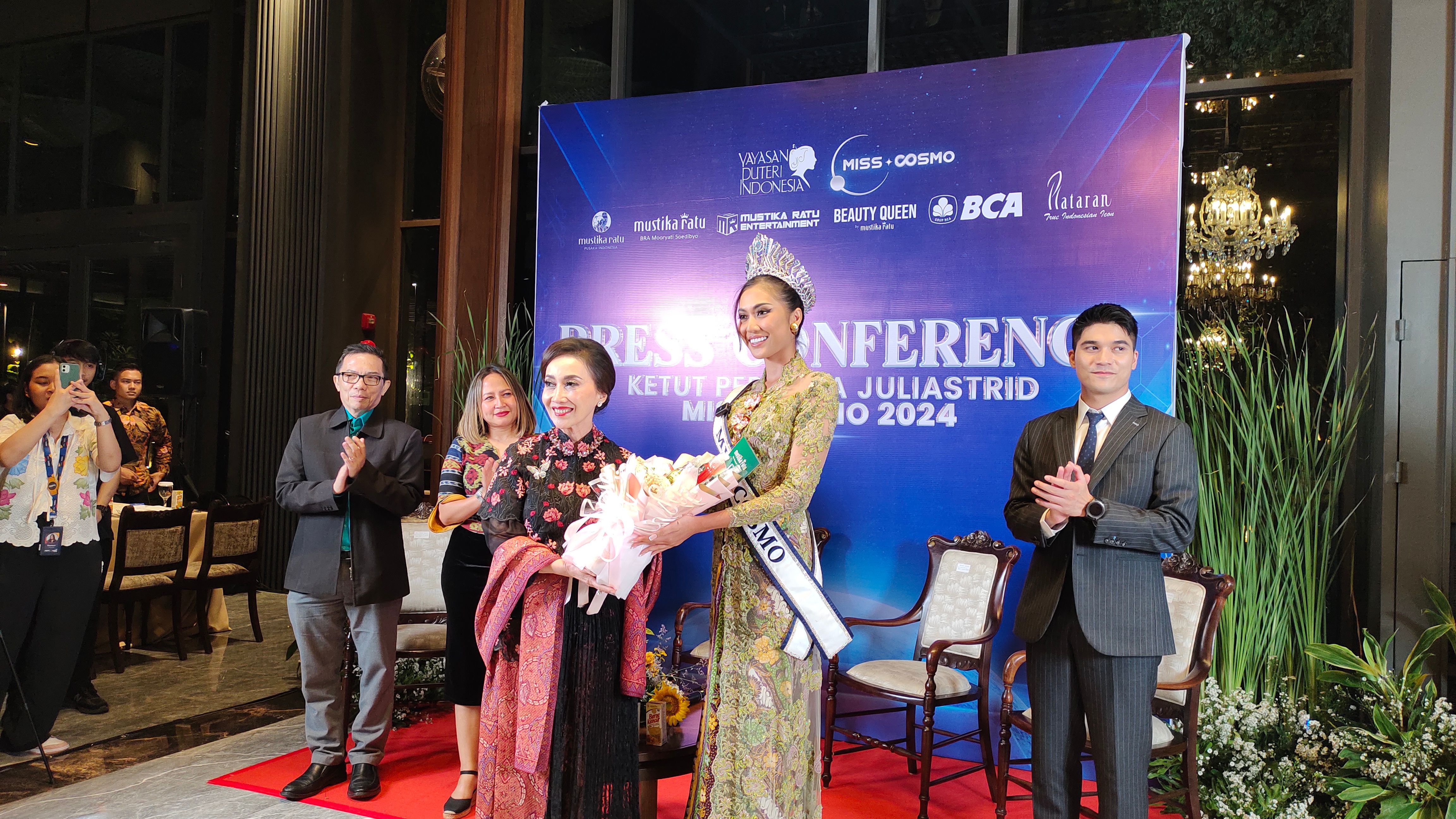 Jakarta, tvrijakartanews - Ketut Permata Juliastrid Sari, akrab disapa Permata, mencatatkan prestasi gemilang sebagai pemenang ajang perdana Miss Cosmo 2024 yang diselenggarakan di Vietnam pada 5 Oktober 2024. Puteri Indonesia Pariwisata 2024 ini menjadi wakil pertama Indonesia yang dikirim oleh Mustika Ratu dan Yayasan Puteri Indonesia ke ajang internasional tersebut.