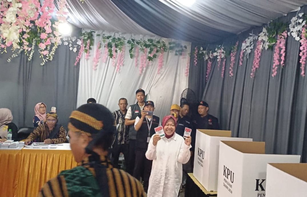 Sebelumnya, Calon Gubernur Nomor Urut 3 Tri Rismaharini mulai masuk ke bilik suara di TPS 16 pada pukul 07.46 WIB, Rabu (27/11/2024).
