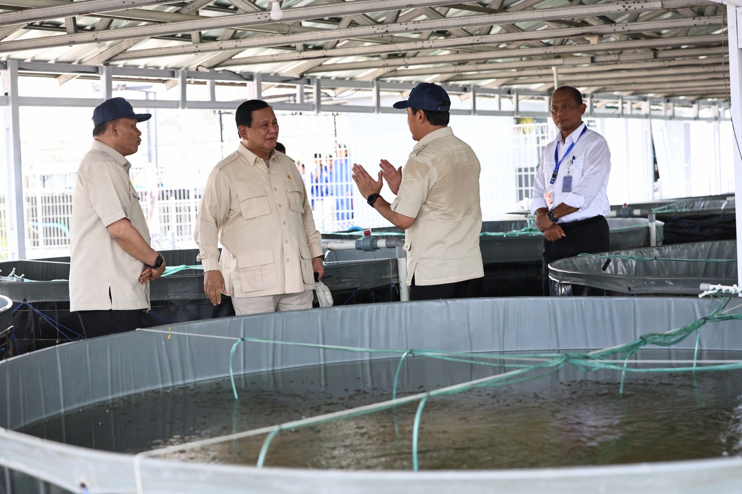 Setelah itu, Prabowo meninjau area pendederan benih ikan nila salin yang menjadi bagian dari siklus awal budidaya. Ia juga sempat menyapa ratusan warga yang hadir dan para pembudidaya ikan yang berada di sekitar kawasan tambak.
