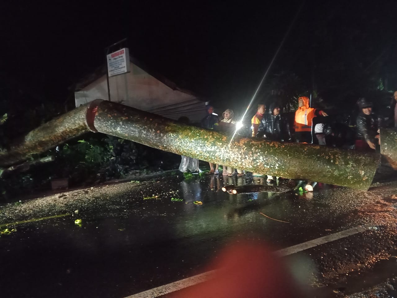 Pohon tumbang berukuran besar di kawasan Carita menutupi jalan ( sumber : Tb Agus Jamaludin )