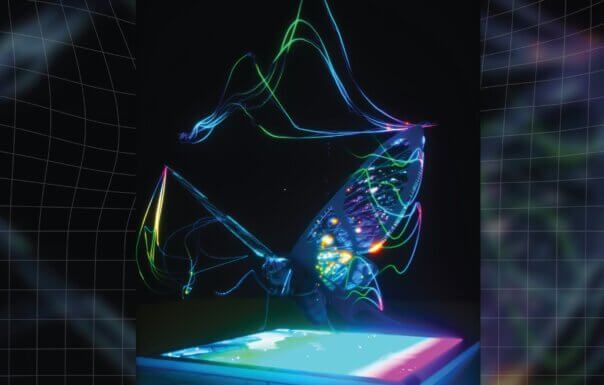 Foto: Study Finds (Penggambaran artistik kupu-kupu di atas sensor pencitraan bioinspirasi. (Kredit: Sekolah Tinggi Teknik Grainger di Universitas Illinois Urbana-Champaign)