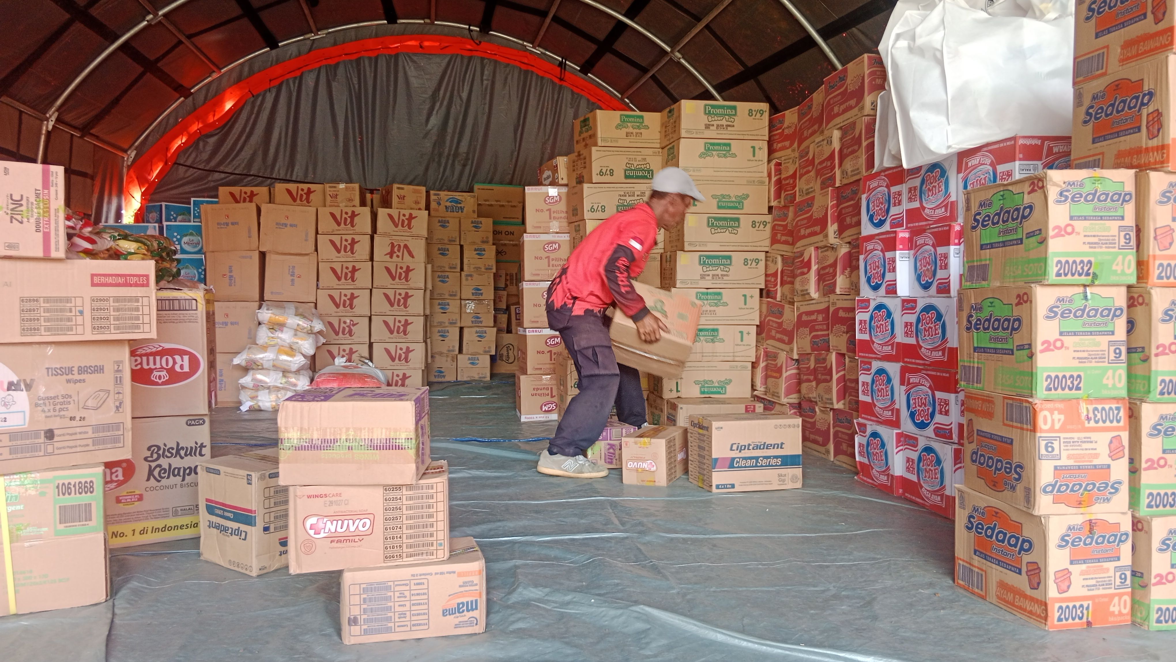 Mulai dari bahan makanan, hingga kebutuhan warga seperti tenda, kasur, hingga selimut pun masih tersedia.