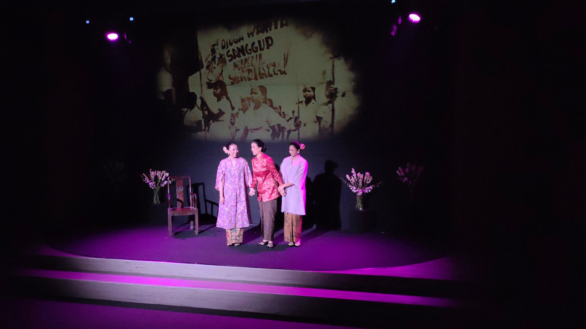 Acara ini menampilkan pertunjukan teater monolog yang dibawakan oleh aktris-aktris ternama Indonesia. Marcella Zalianty akan memerankan Sukanto, seorang tokoh perempuan inspiratif; Ruth Marini memerankan Nyi Hajar Dewantara, pelopor pendidikan perempuan; dan Aghniny Haque akan memerankan Suryatin, figur penting dalam perjuangan emansipasi perempuan. Ketiga monolog ini mengangkat kisah-kisah bersejarah yang menggambarkan perjuangan perempuan untuk meraih hak-hak mereka.