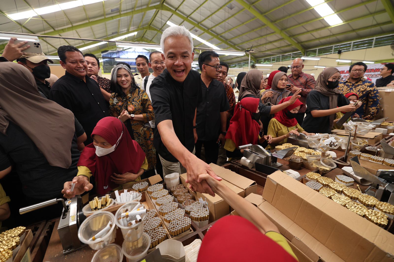 Ganjar Pranowo saat mengunjungi pabrik rokok Sampoerna di Jateng. Sumber TPN Ganjar-Mahfud