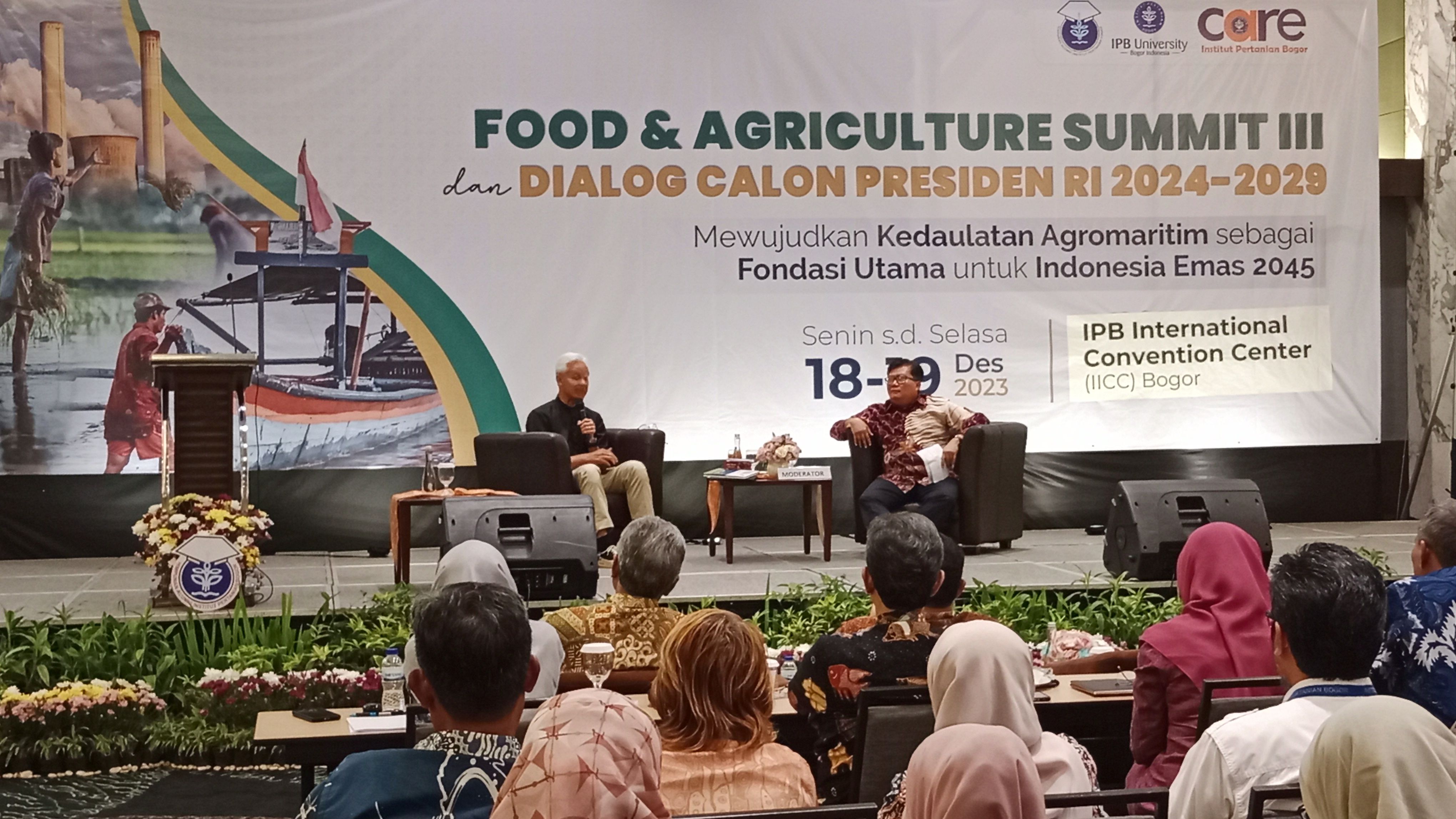 Ganjar Pranowo saat menghadiri acara dialog Food & Agriculture Summit III IPB International Convention Center (IICC) Botani Bogor, Selasa 19 Desember 2023. Foto: Dimas Yuga Pratama