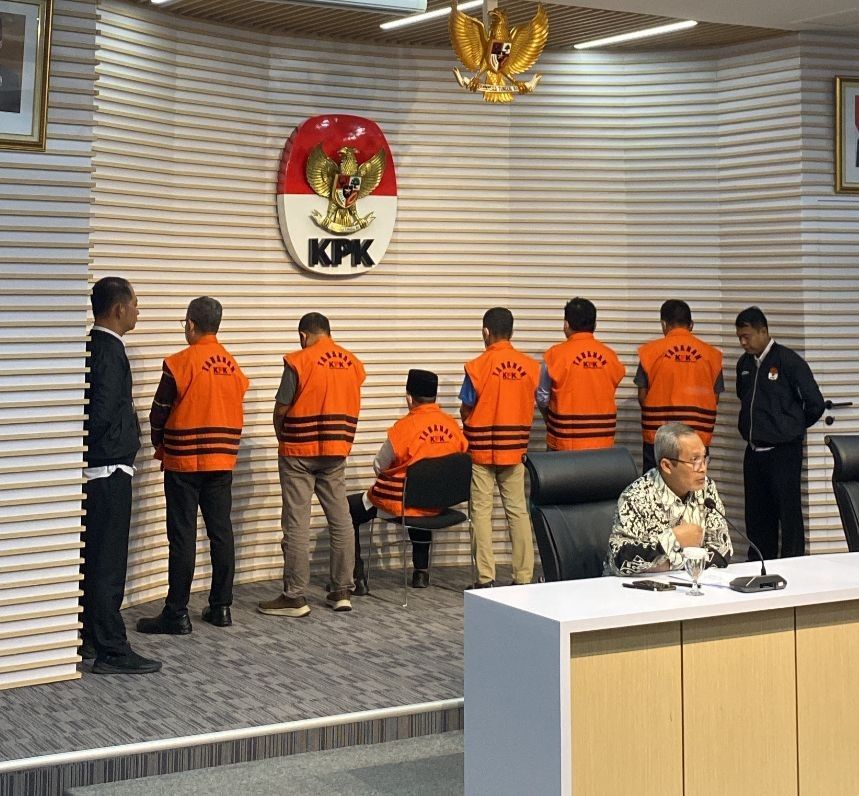 Sejumlah tersangka di Ruang Konferensi Pers Gedung Merah-Putih KPK. Foto: Achmad Basofi