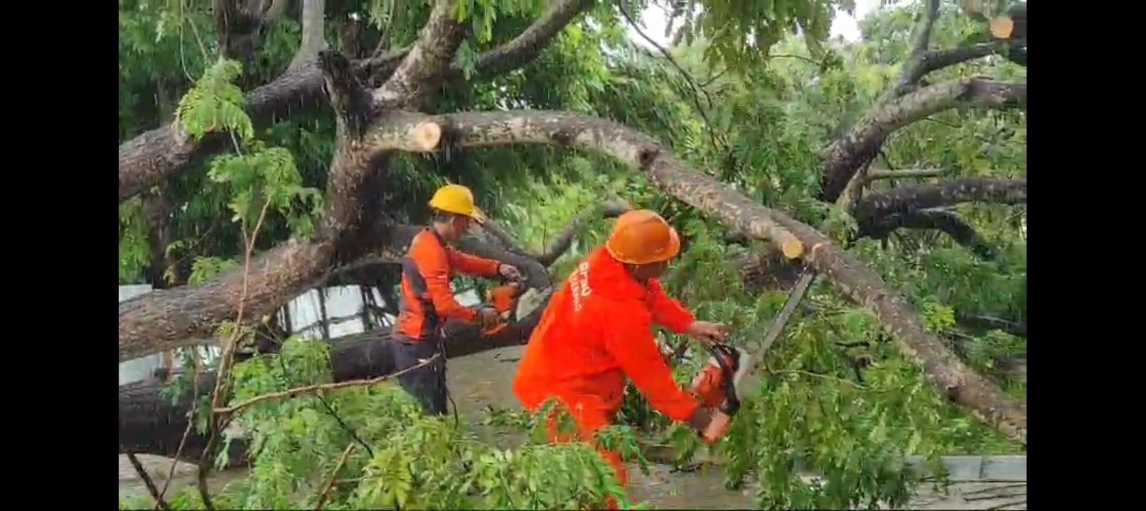 "Kami mendapatkan laporan langsung sigap dan turun ke lokasi dengan menerjunkan tim personil dan mengevakuasi pohon tumbang dengan mesin pemotong," katanya saat ditemui di lokasi.